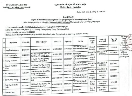 - Facebook: QNC Trường Cao đẳng Quảng Ngãi